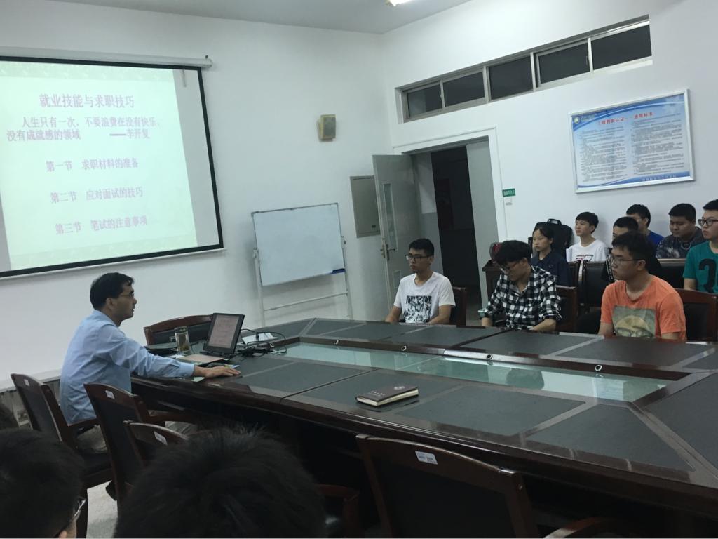 为指导澳门人威尼斯3966毕业生积极参加盐城市新能源产业人才招聘会,掌握求职应聘技巧,9月4日下午,在北校区知达楼第一会议室,澳门人威尼斯3966开展就业技能与求职技巧指导讲座。澳门人威尼斯3966党委书记陈志华主讲,2016级新能源材料与器件相关专业毕业生参与。