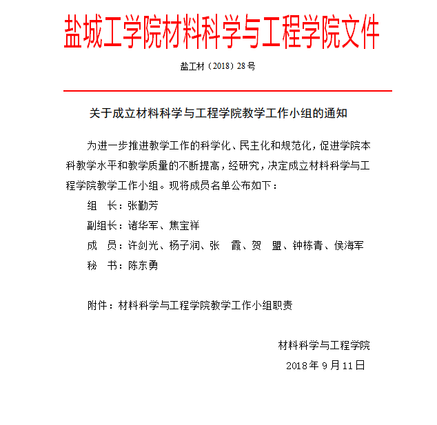 关于成立材料科学与工程澳门人威尼斯3966教学工作小组的通知-澳门人威尼斯3966