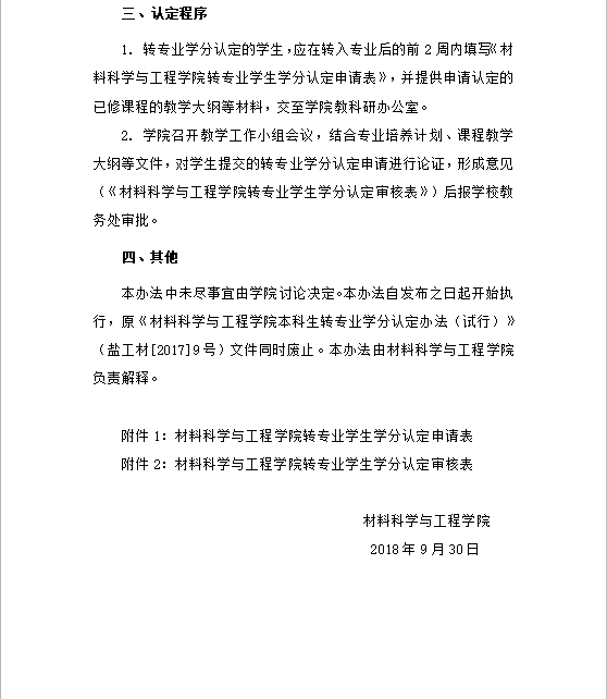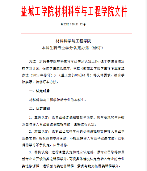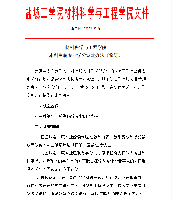 材料科学与工程澳门人威尼斯3966本科生转专业学分认定办法(修订)-澳门人威尼斯3966
